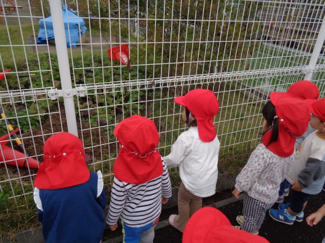 戸外に出て保護者駐車場まで散歩に行きました。