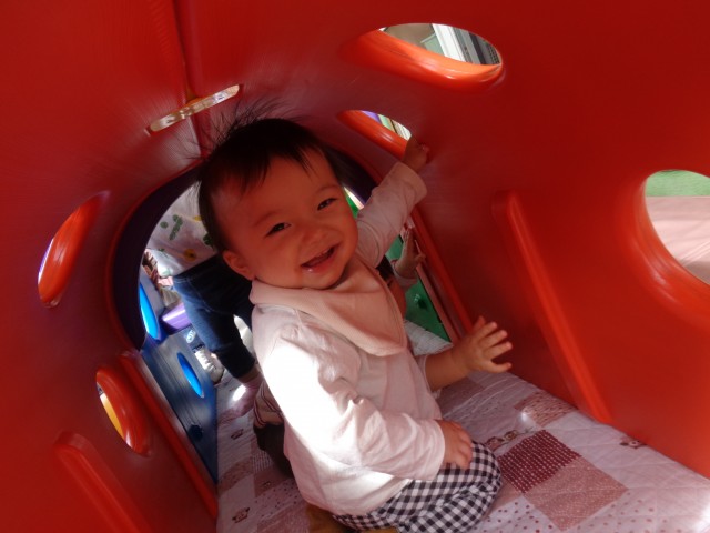 トンネルの中が心地よかった様で座ってくつろいでいました。