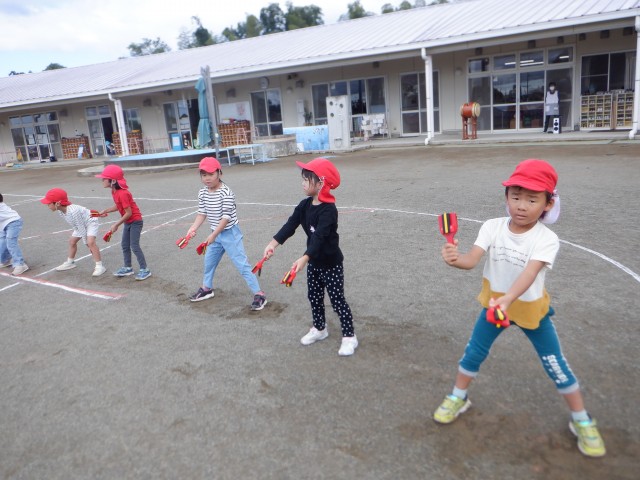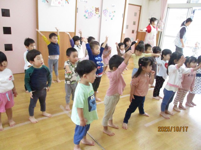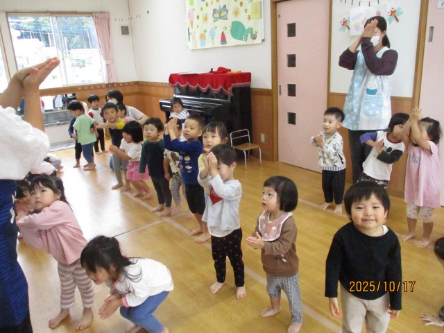 その他にも『どんぐりころころ』や『大きな栗の木の下で』などの季節の歌をうたったり、ジャンプをしたりして楽しみました。