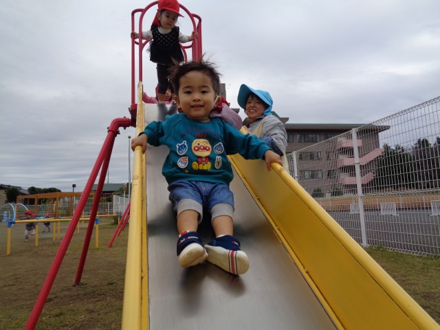 滑り台を怖がる子もいましたが、ほとんどの子が大喜びで滑っていました。