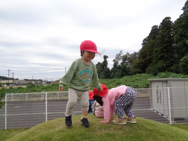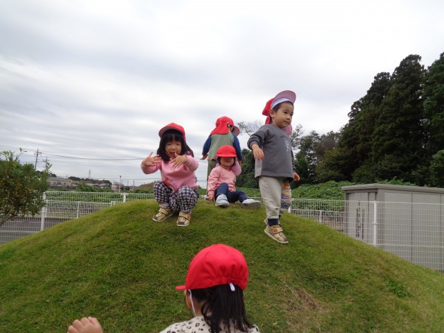 滑り台の後は、築山に登り大きな声で「ヤッホー!」楽しい山登りでした。