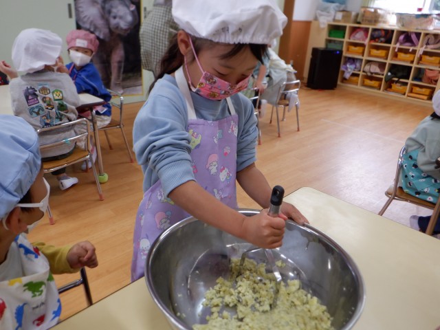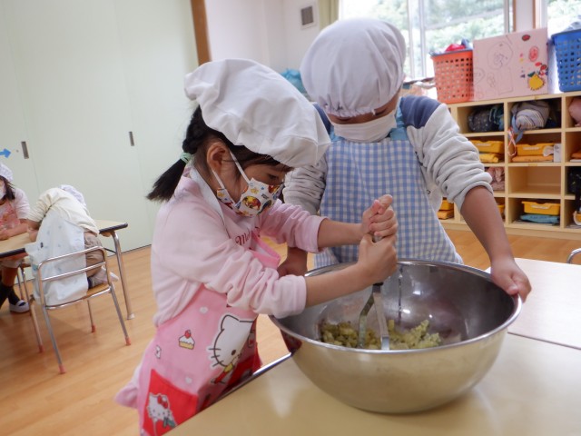 クッキングでさつまいもきんとんを作りました。