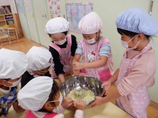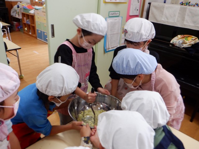 うめ組では「やってみたい‼」と、混ぜる事にも挑戦しました♪