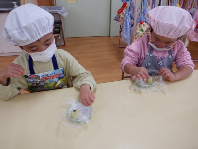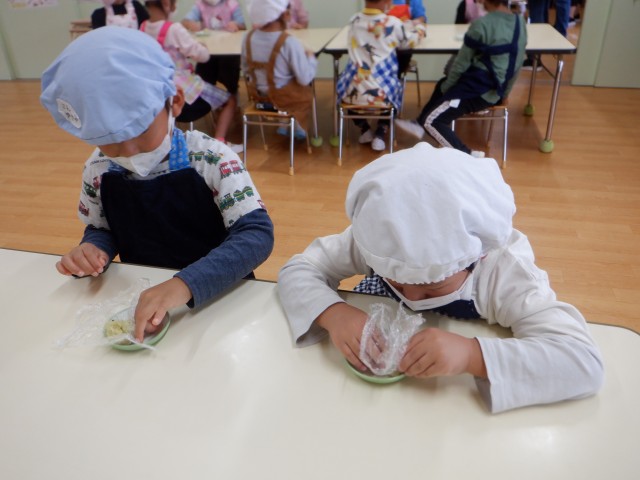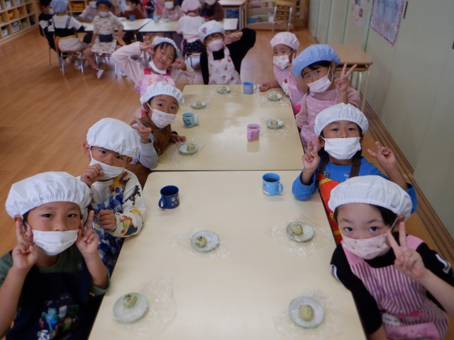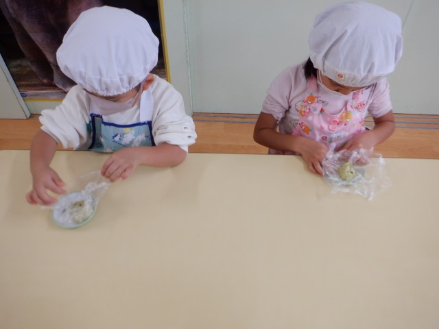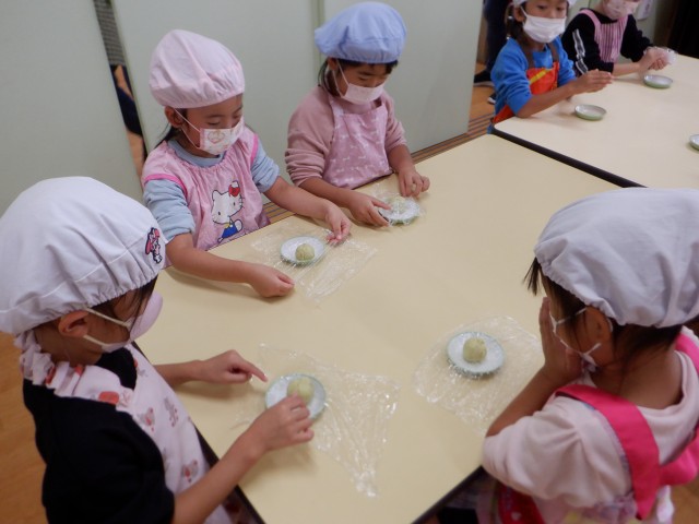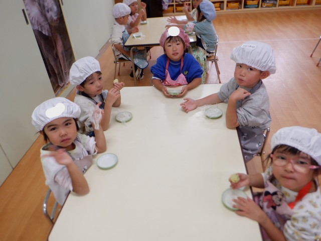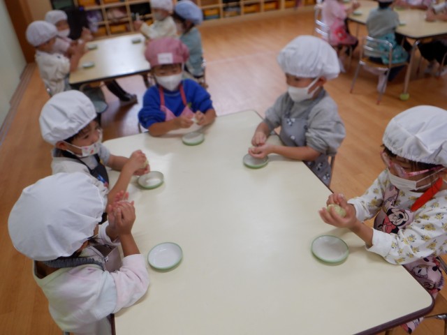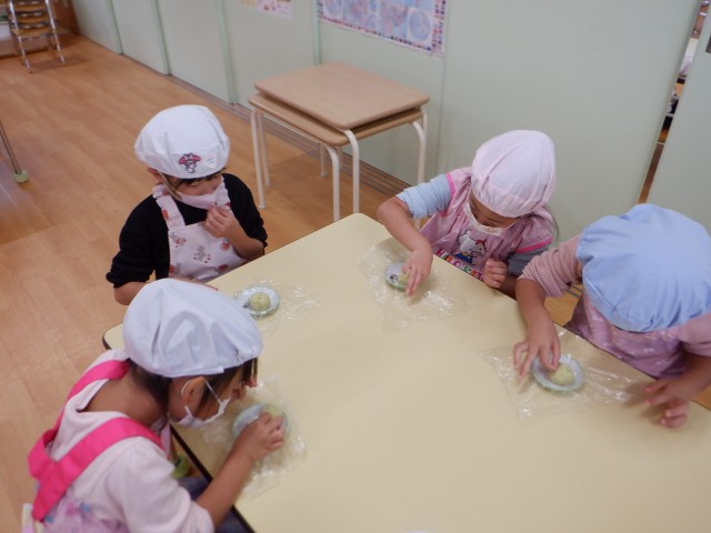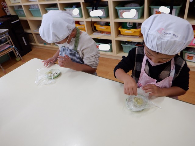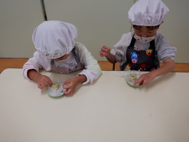 上からパラパラと振りかける子、さつまいもあんの中に埋め込む子、時間をかけて丁寧にゴマ顔や模様を作る子など様々でした☆