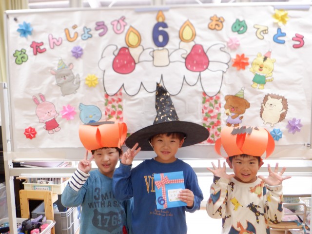 10月生まれのお友達の誕生会とハロウィンパーティーをしました。