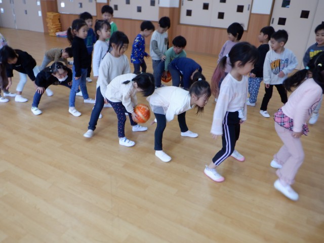 ジャックオーランタンになったボールを使って、爆弾ゲームをしたり、ボール渡しリレーをしたりしました♪