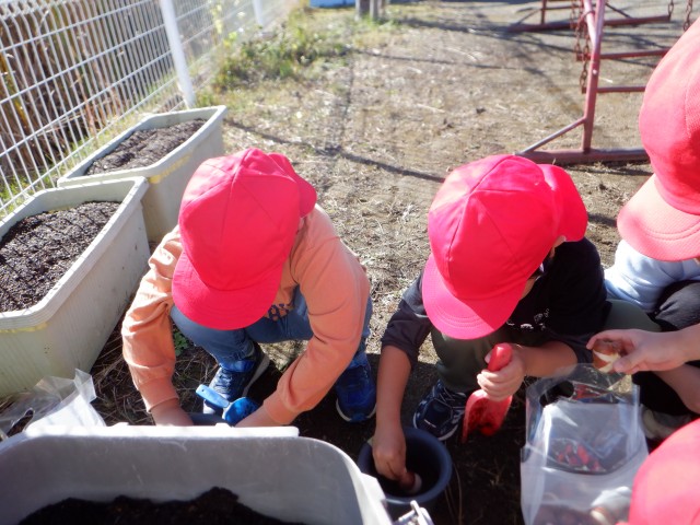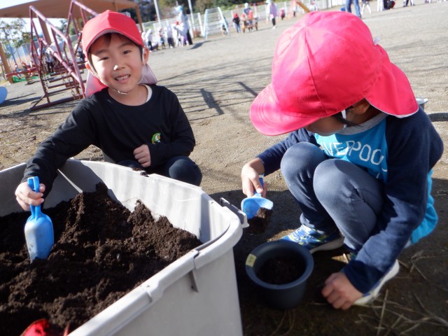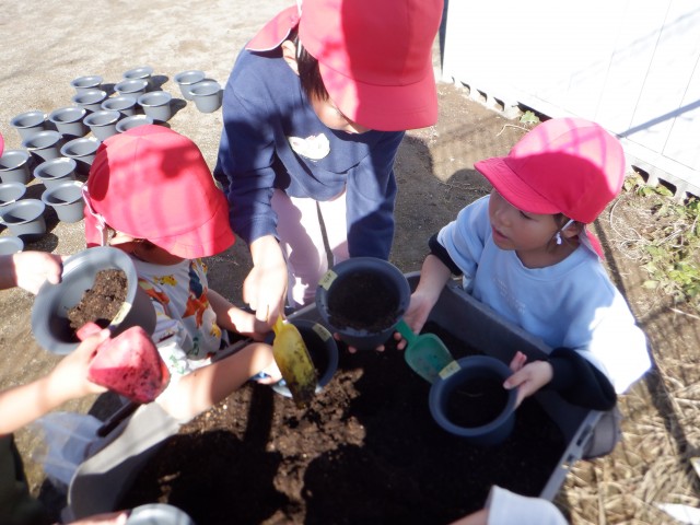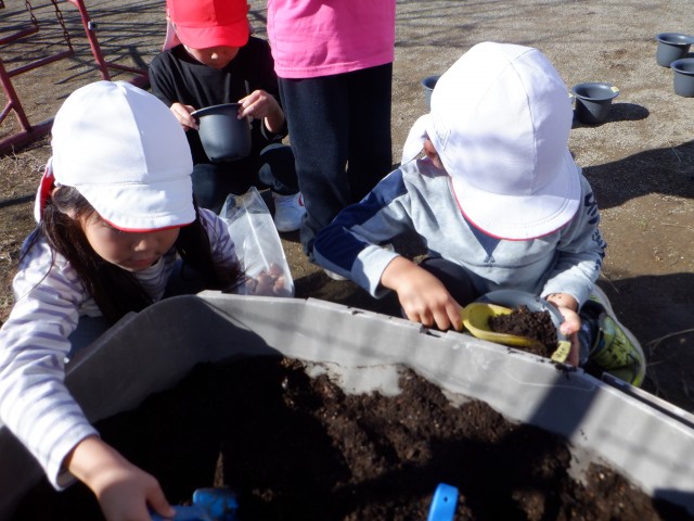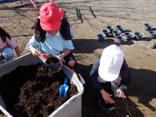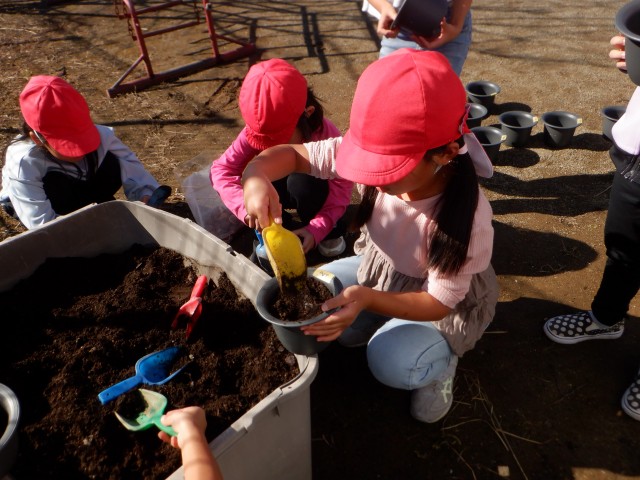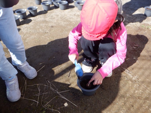 最後に上から土をかぶせます‼固めすぎないように優しく土をかけていました♪