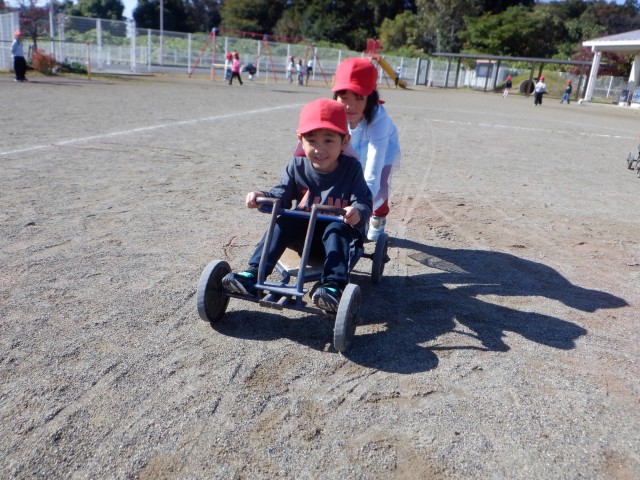 運転手の腕前でまっすぐ走るペア、あちこち行ってしまいなかなか帰ってこないペア…となりましたが、楽しんで遊んでいました。