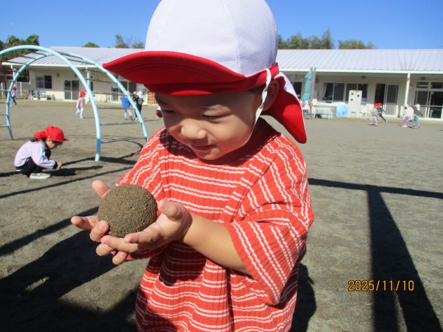 保育士に作ってもらった泥団子を大事に持つ姿もとても可愛らしいですね♪