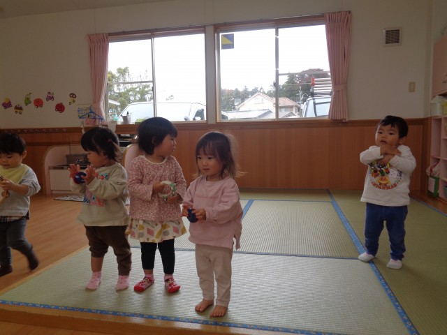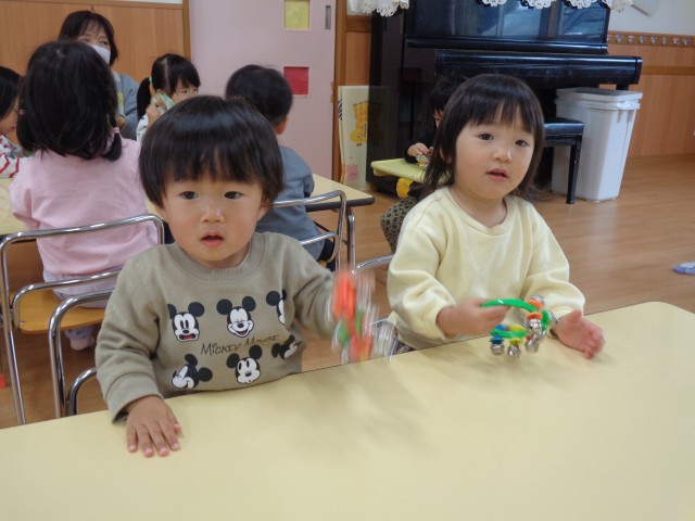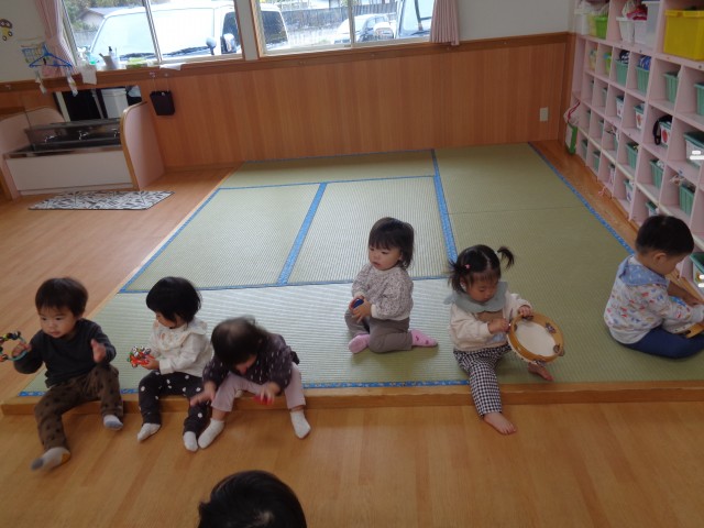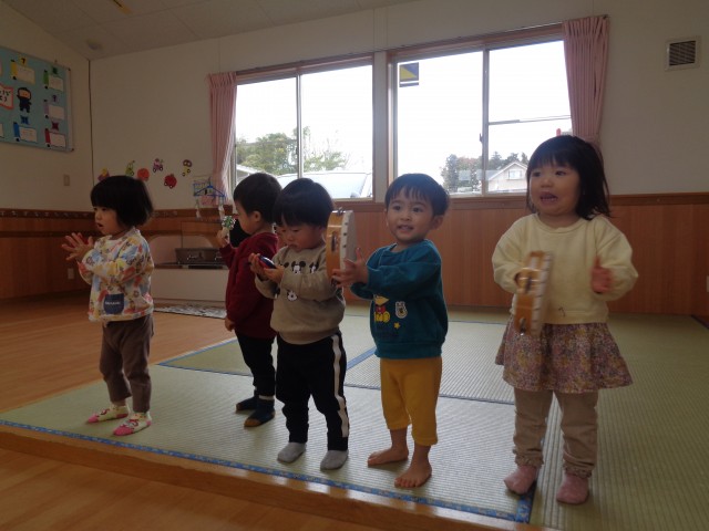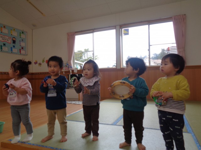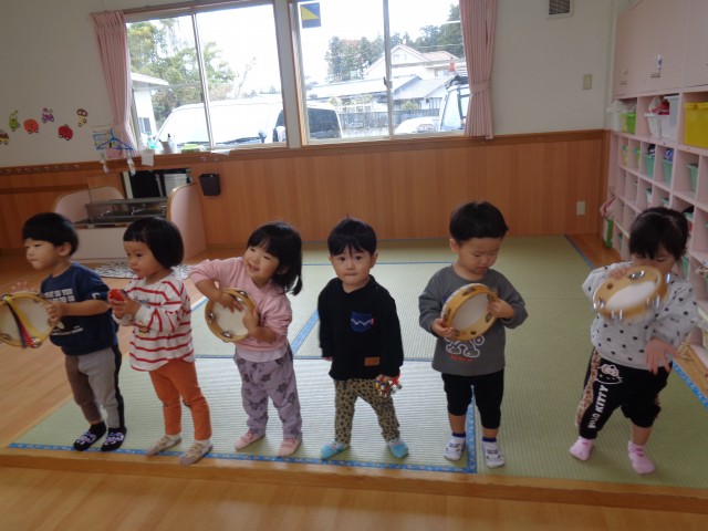 緊張している子や、ニコニコ笑顔で楽器を鳴らす子など、様々な子どもたちの様子が見られました☺皆一生懸命でとても微笑ましかったです♪