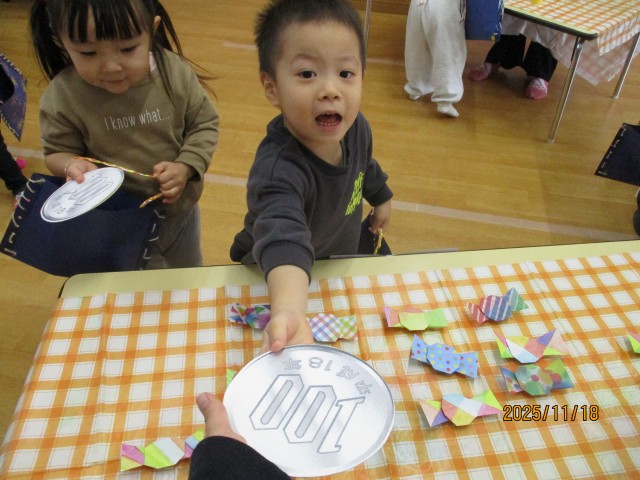 「当たらなかったよ!」「当てられた…」と楽しそうにゲームをしていました。