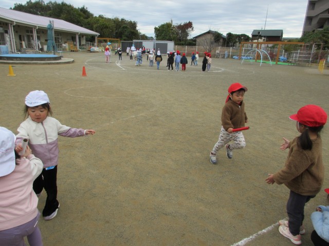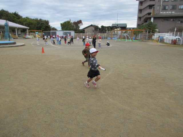 最初は、久しぶりにリレーをしました。運動会の時とはチームのメンバーを変えて行いました。最後にリレーをしてから期間が空いていたのですが、バトンパスの仕方や並び方、応援の仕方等とっても上手でした♪