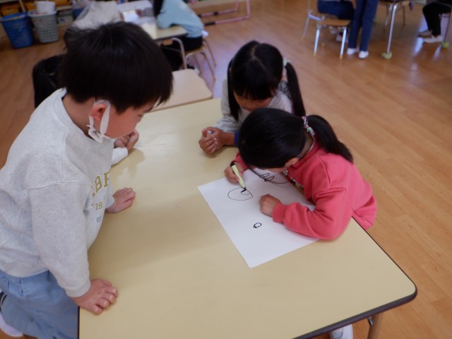 グループで個性が出ており、見た絵を直接描く子や描く担当が決まっていて見てきた人が指示をして描くグループなどが見られて面白かったです。どのグループも友達と協力しながらイラストゲームを楽しんでいました♪
