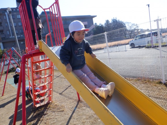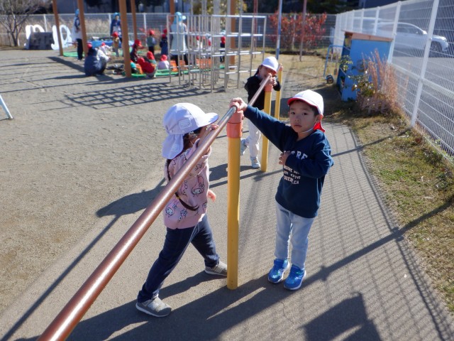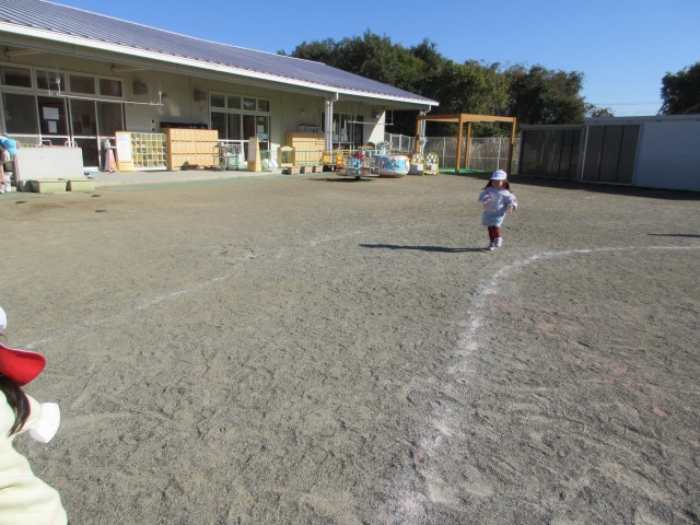 最後、保育室に戻る前に鬼ごっこをしました。保育士が鬼となり仲間がどんどんタッチされていくと「頑張れ~!」「逃げて!」等大盛り上がりの子どもたちでした☺