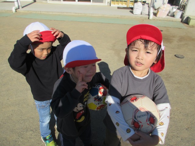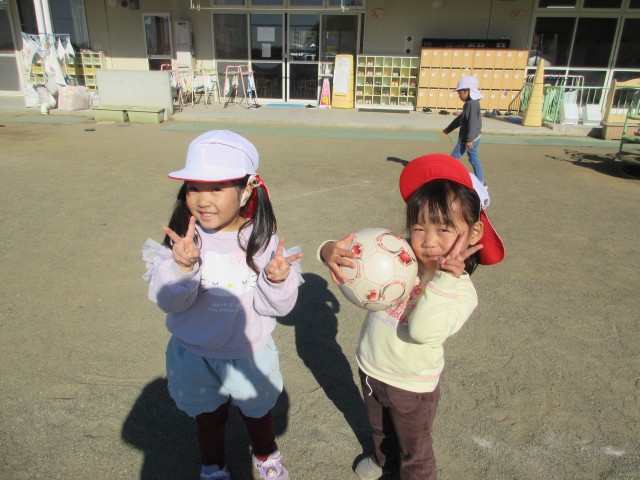 マラソンの後はボールやポックリ、フラフープを出して自由に遊びました。