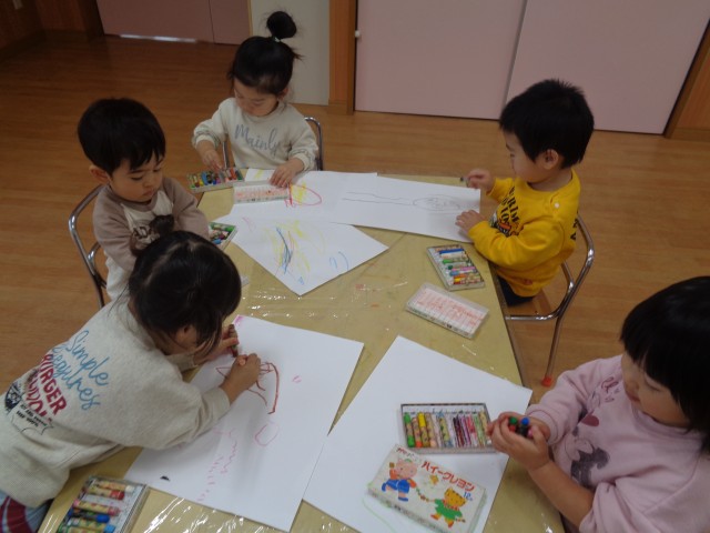 様々な色を使って丸をたくさん描いたりアンパンマンのキャラクターを表現したりして楽しんでいました☺