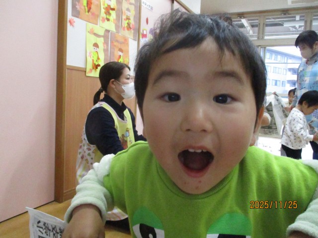 『サンタのおじいさん』の歌を歌うと、「サンタさん来るの~?」「楽しみ‼」とクリスマスを心待ちにしているようでした。
