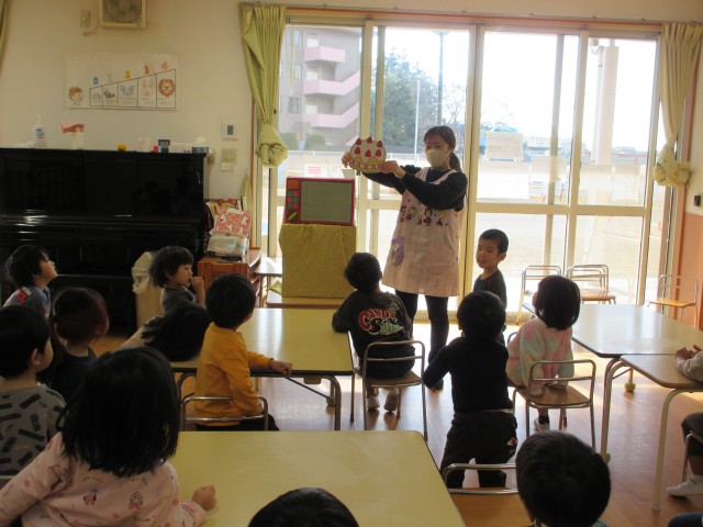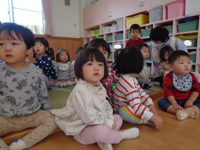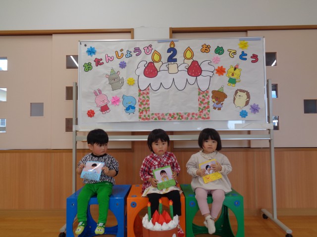 11月生まれの子の誕生会を行いました。今月は各クラスでお祝いをしました。