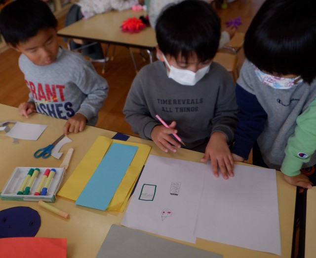 発表会で行う劇の役を発表しました。「なにかな、、、、?」とドキドキなこどもたち。