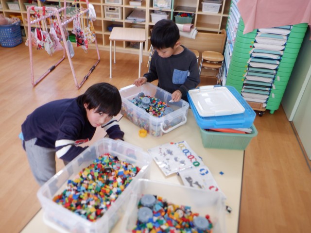 粘土やブロックなど他のコーナーでも伸び伸びと楽しんでしました☆