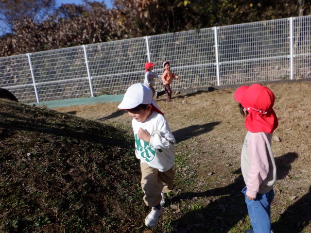 山を登り降りしたり、周りを走ったりと元気いっぱいに遊ぶ子どもたち。