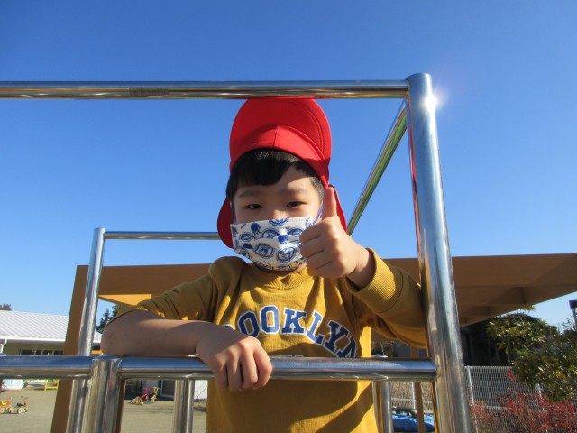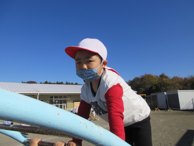 鉄棒、登り棒、太鼓橋、ジャングルジムの固定遊具で遊ぶ子や保育士と鬼ごっこをする子等様々でした♪