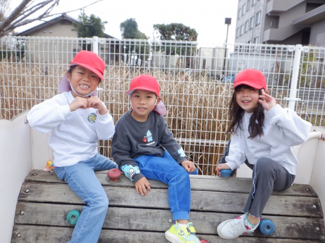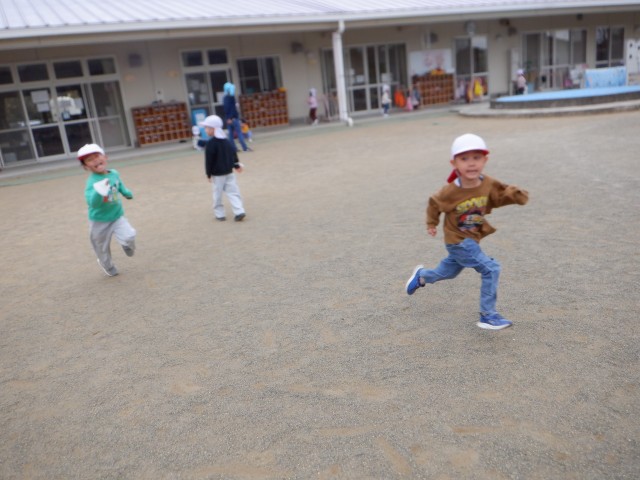 戸外遊びをしました。友達を誘って、園庭を広々と使い鬼ごっこやサッカーをして体を動かしていました。鉄棒では、連続前回りや逆上がりができる友達に教えてもらう姿もありました。保育士がカメラを持っているのを見つけると、「先生、撮って~」と寄ってくるうめ組です♪