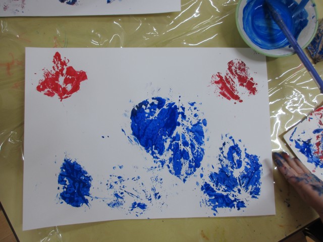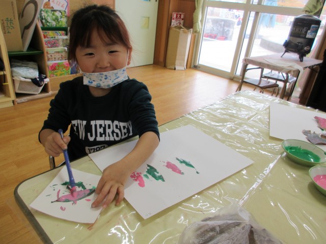 「葉っぱの形にスタンプできた~」「羽みたい!」と様々な声が聞えてきましたよ☺