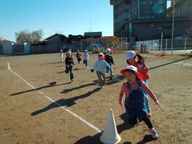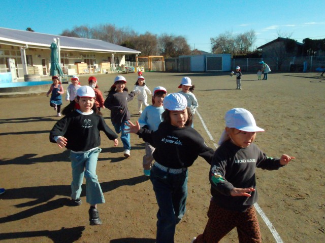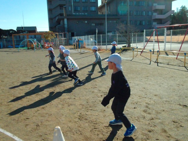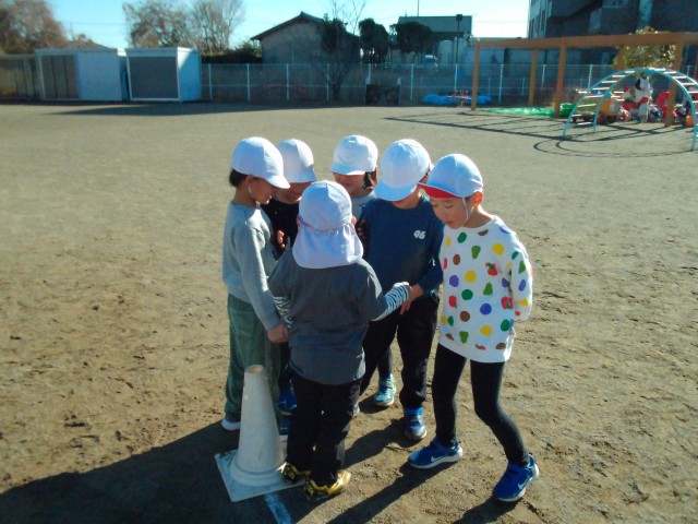 反対方向から追いかけてみたり、フェイントをしたりしていました。夢中で逃げていて前をあまり見ていなかった子は、その作戦に引っかかり捕まってしまっていました、、、、。しかし次は捕まらないようによく鬼の動きを見ながらに逃げていました。
