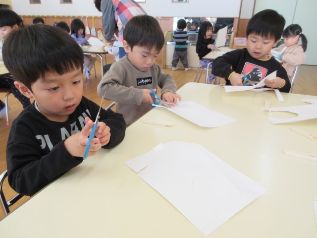 一人では難しい子も保育士と一緒に最後まで切ることが出来ると、とっても嬉しそうでした☺