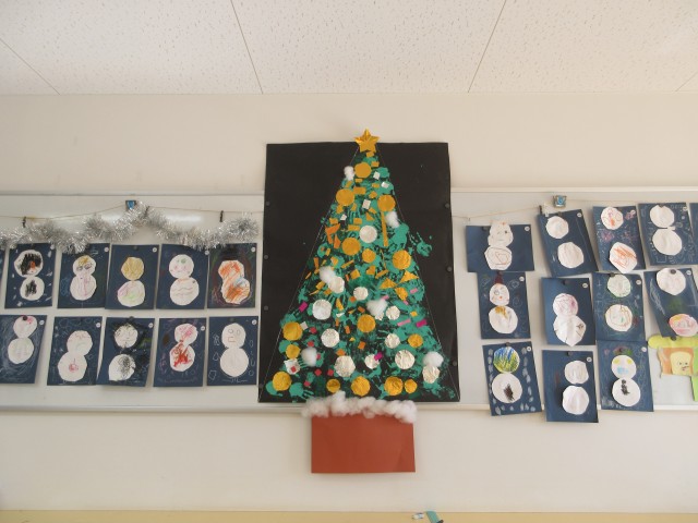 みんなの雪だるまは、クリスマスツリーの周りに飾りました♪