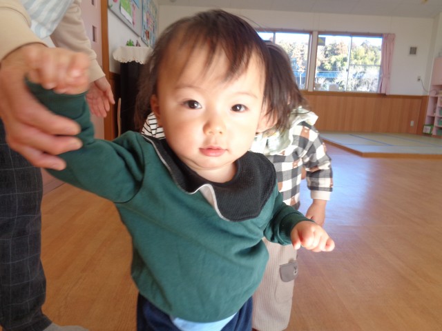 運動遊びの前に、準備体操としてアンパンマン体操や鬼のパンツを踊りました。保育士の踊る様子を見て一生懸命真似をして踊っていて微笑ましかったです☺