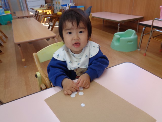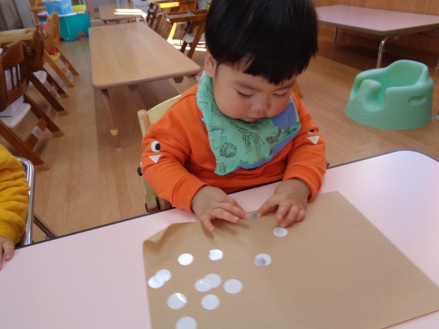 シールの台紙から1枚剥がす度に保育士に嬉しそうに見せてくれる様子も可愛らしかったです☺