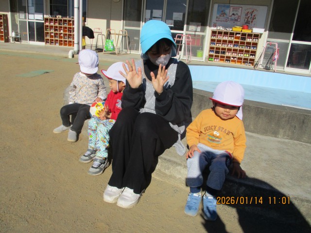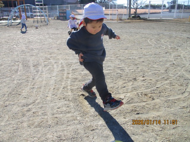 ECCに参加しました。凧やコマなど1月ならではの単語を覚えました。先生の真似をして体を動かす遊びで盛り上がっていたうめ組です☺