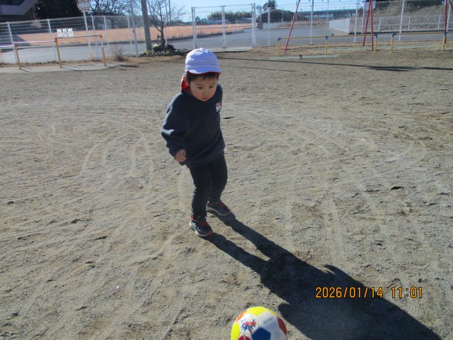 サッカーボールでは、構えて…思い切り蹴る!姿がとてもかっこよかったです♪思ったところに跳ばなかったとき「あれ♪」と少し恥ずかしそうにする姿も可愛らしかったです♪