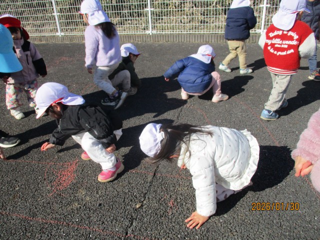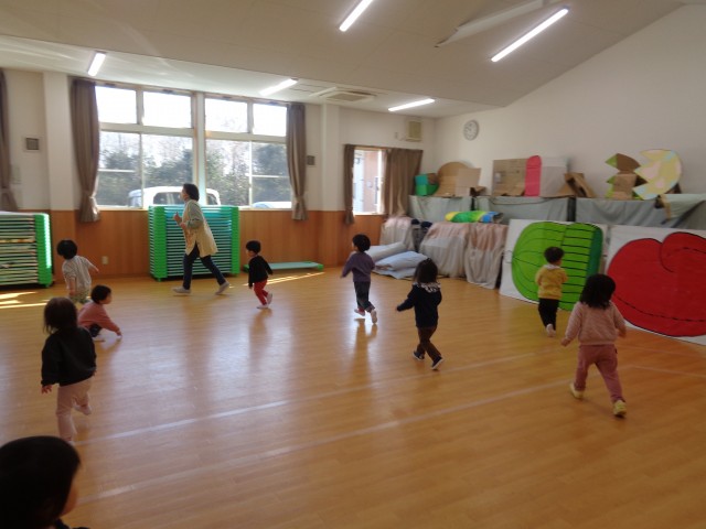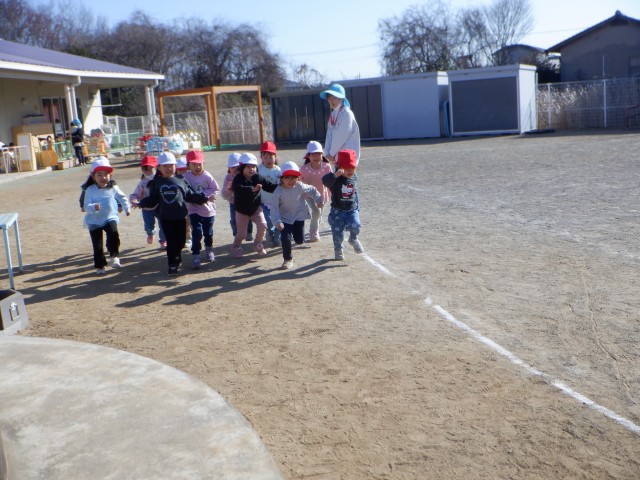 マラソンでは、保育士の後に続いて「きゃー」「楽しい!」と言いながら元気よく走る姿が見られ、とても微笑ましかったです!