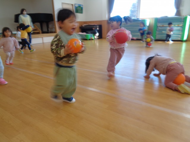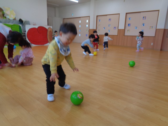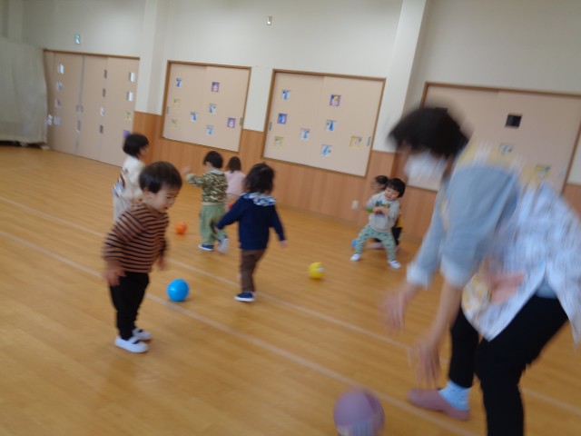 月齢の高い子は、ホールで遊びました。