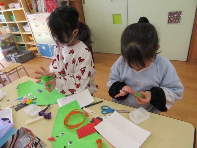 「優しい鬼にする‼」と鬼のテーマを決めながら作る子もいました♪