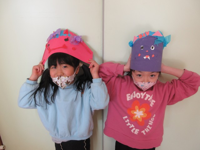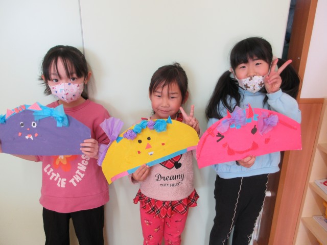 一人一人の個性が出た可愛らしい鬼のお面が完成しました。