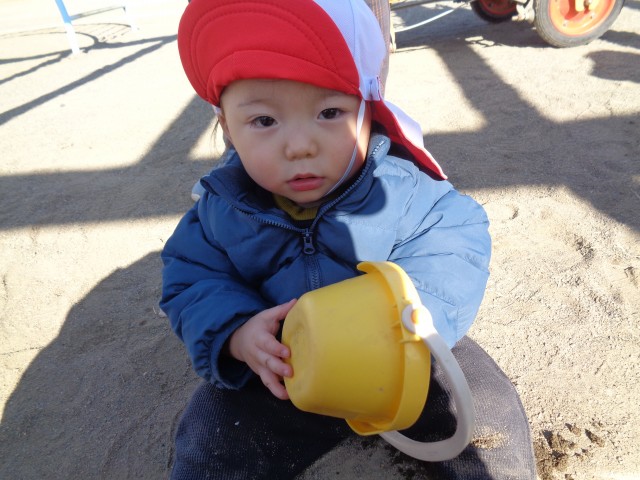 久しぶりの砂場遊びだからか、皆よく遊んでいました♪お友達と一緒にコップやバケツに砂を入れたり、一人で黙々と遊んだりと、思い思いに楽しみました♪「あーそーぼ」「いーいーよ」というやり取りが沢山聞こえるようになり、成長を感じました☆