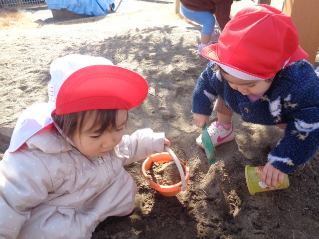 戸外に出て砂場遊びをしました。