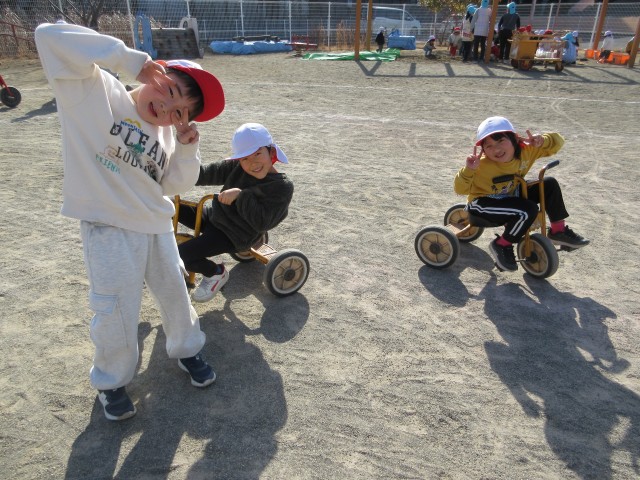 その後は二輪車や三輪車、ポックリなどで遊びました。