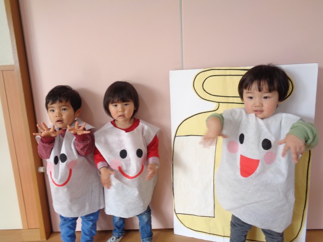 先週お休みした子たちは、発表会の衣装を着て写真撮影をしました。オバケになりきってポーズをしていて、気分は役者さんです☆