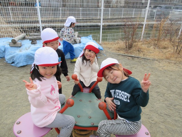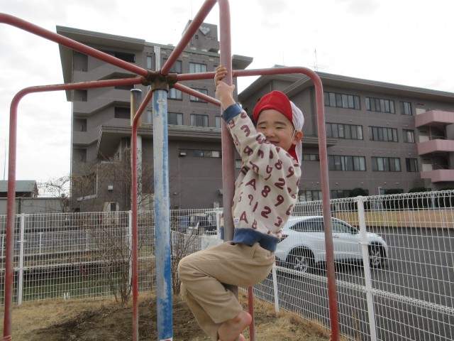 その後は外に出て、マラソン大会の練習をしたり氷鬼をしたりして体を動かしました。3位までメダルがもらえることを話すと、「オリンピックみたい‼」と言って盛り上がっていました。今日は、歩かずに走りきることを目標にして頑張りました。