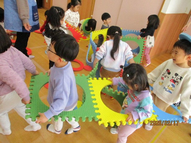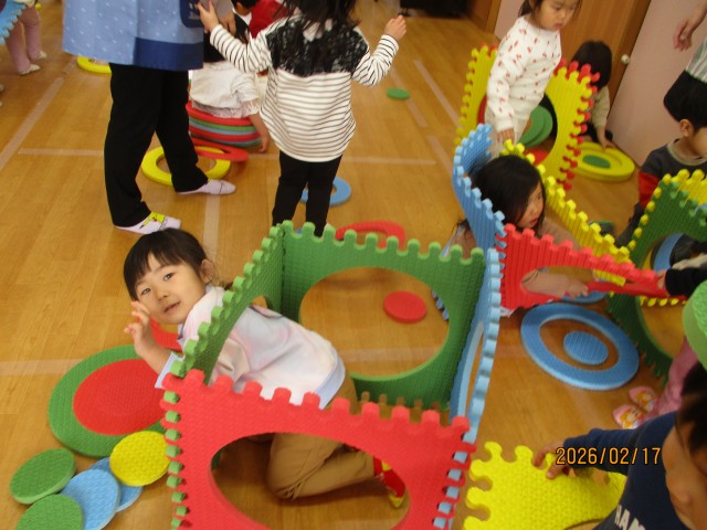 プラポイントで遊びました。友達との関わりが増えてきて、「一緒にお家つくろうよ」「電車に乗って~‼」と友達を誘って楽しんでいました。