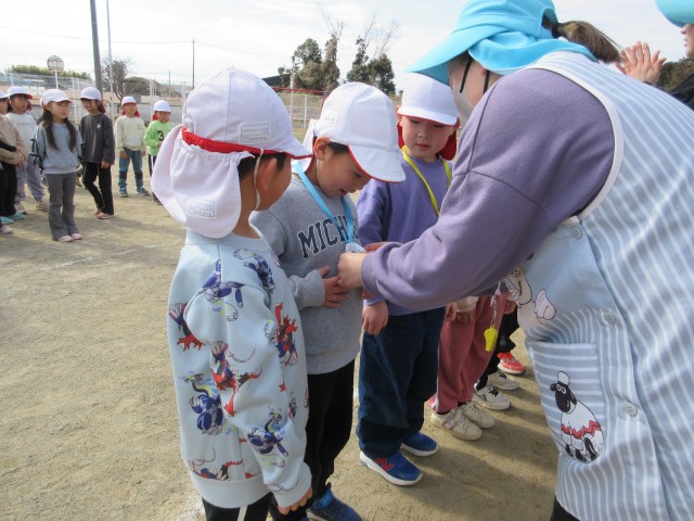 マラソンはゆり組女の子→男の子→たんぽぽ組女の子→男の子→うめ組女の子→男の子の順に行いました。