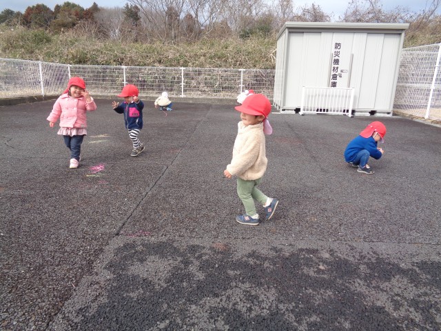 たんぽぽ組は、ECCの前に戸外遊びをしました。