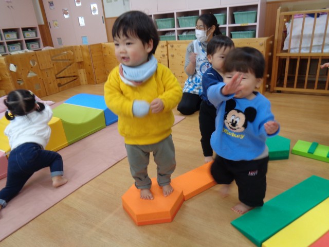 マットの上を慎重に渡ったり、登ったりして楽しみました☺