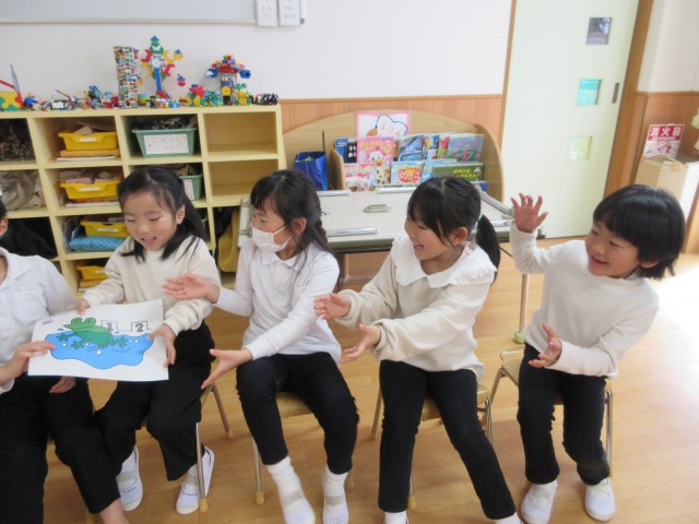 恥ずかしくてできない子もいましたが、上手にジェスチャーをする子も…