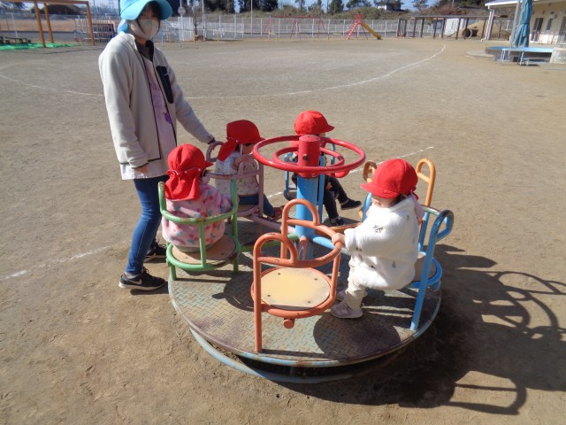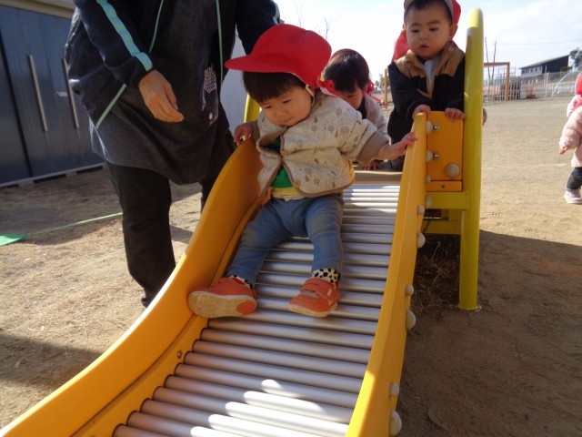 ローラー滑り台、メリーゴーラウンドに乗って遊びました♪